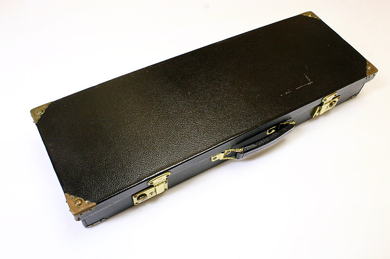 lederbezogener Koffer mit Messingbeschlägen, ausgekleidet mit grünem Stoff, abschließbar (ohne Schlüssel)