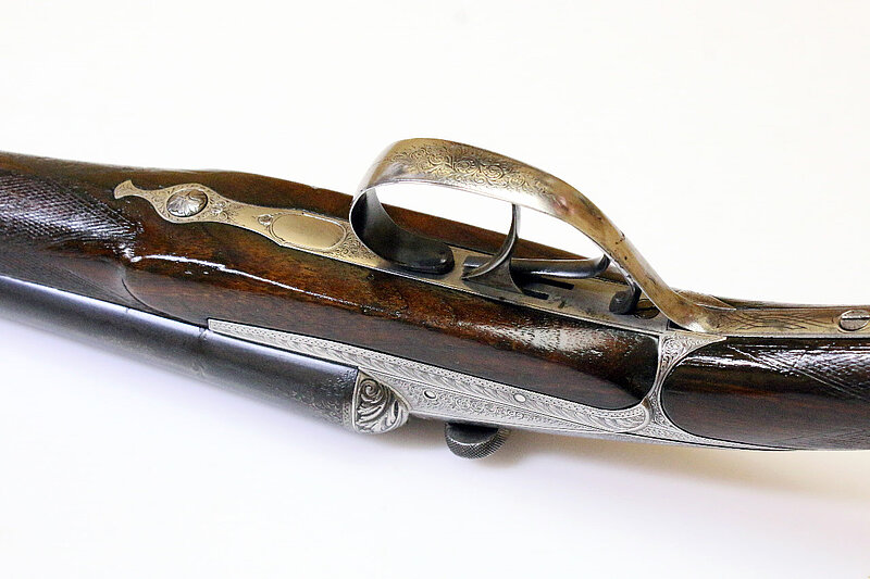 Laufbündel mit gerade, fein guillochierter Laufschiene; Messingkorn; Auszieher
