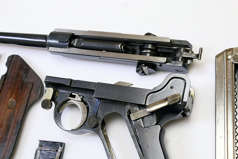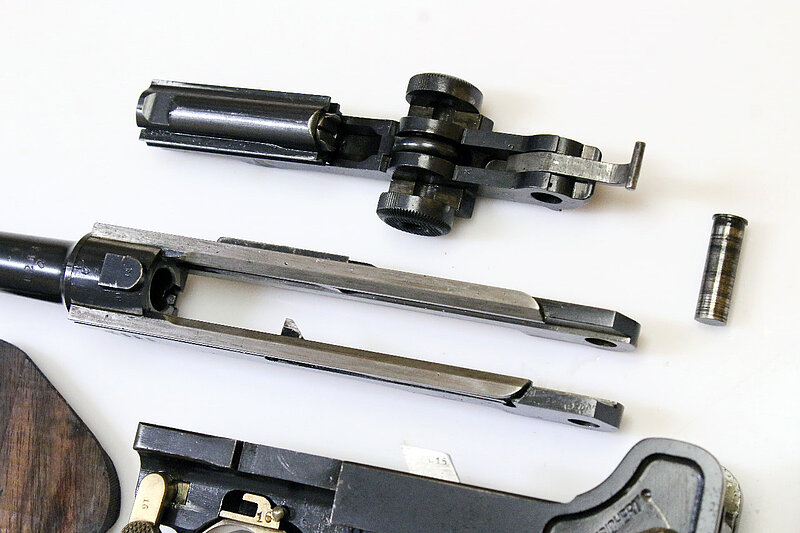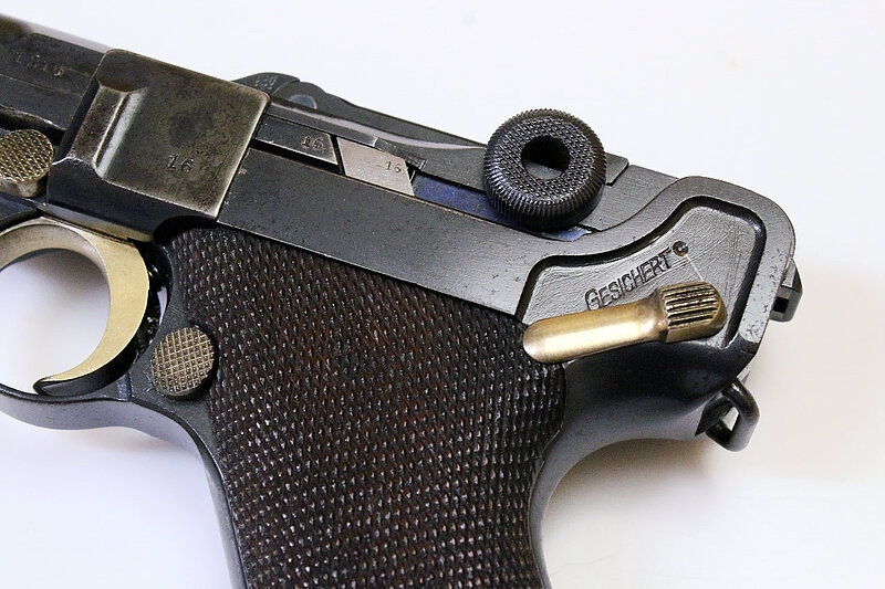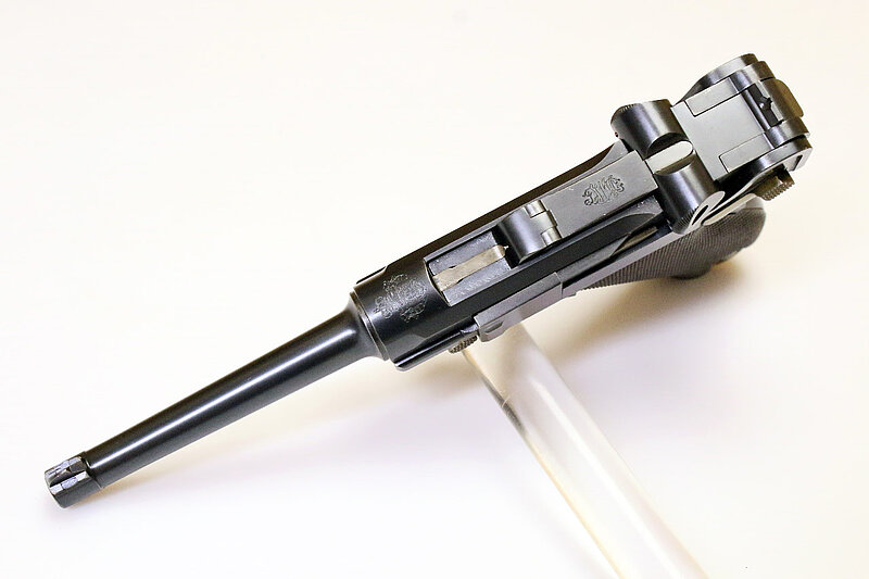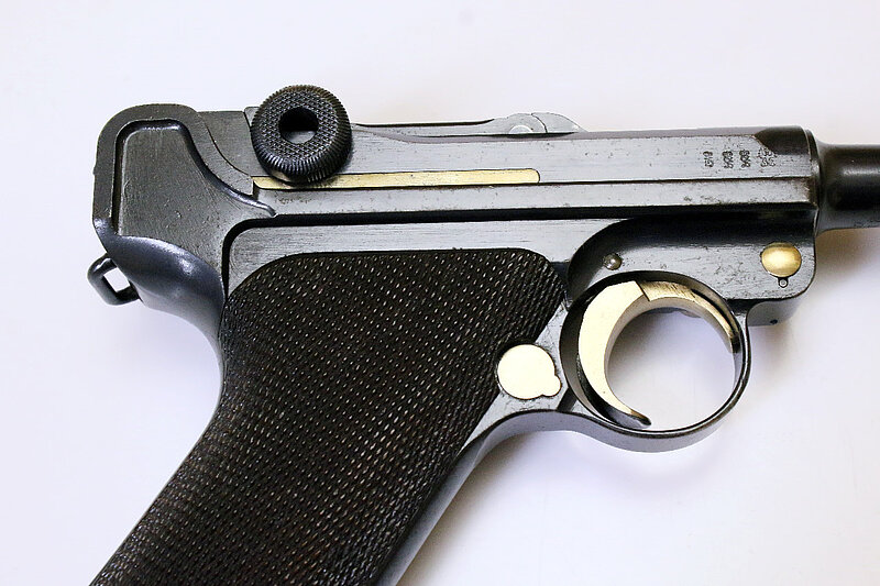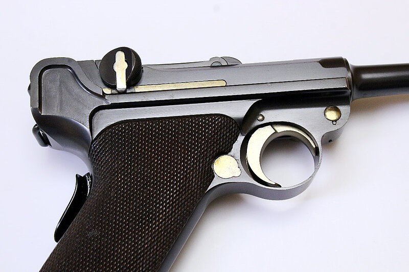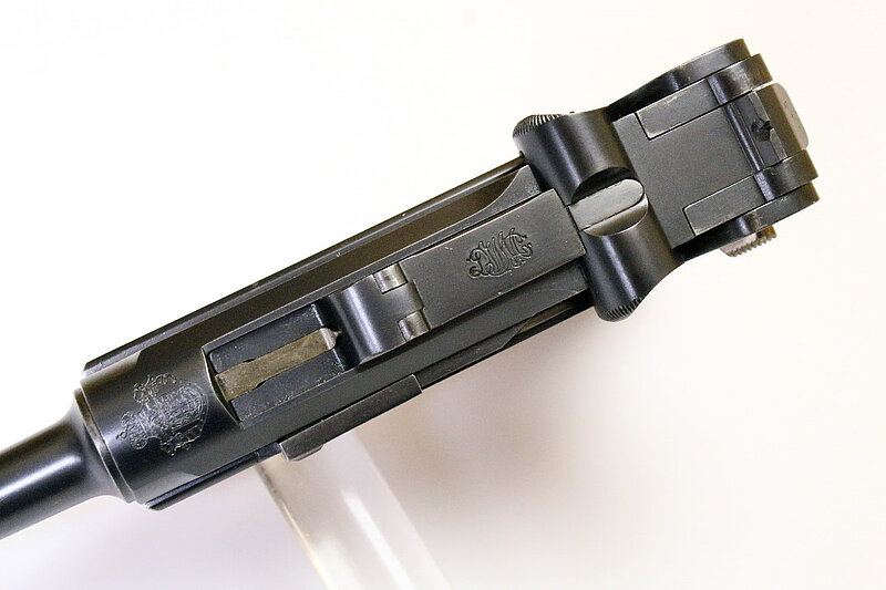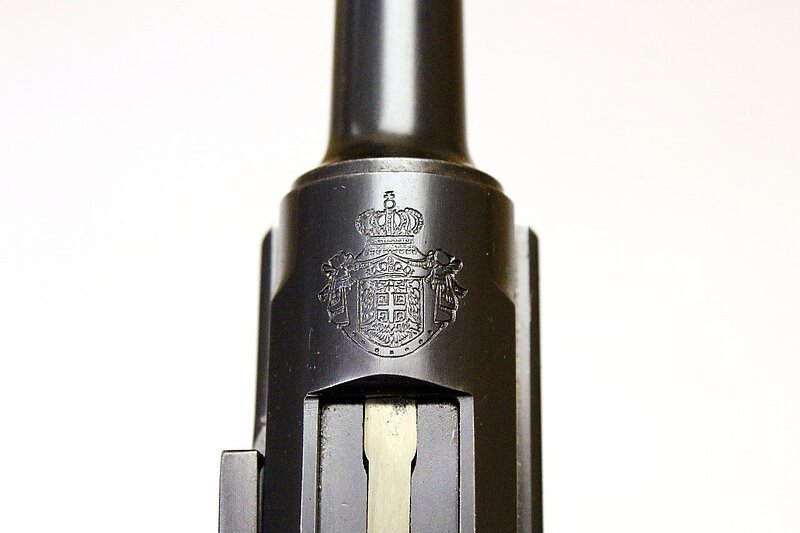 Die angebotene Parabellum zeigt die starke Wahrscheinlichkeit auf, dass Luger seinerzeit nicht nur in Bulgarien aktiv war, sondern zeitgleich auch versuchte, nach Serbien zu liefern. Ein Musterexemplar dafür entnahm er der laufenden Fertigung, denn sonst stünden auf dem Hintergelenk anstatt der Seriennummer seine Initialen "GL". Vermutet werden kann nun, dass es sich dabei entweder um ein individuelles Geschenk von Seiten Lugers an den serbischen Hof handelte, oder um ein Musterexemplar an das Militär oder um einen Auftrag des serbischen Hofes an DWM für eine Geschenkwaffe. Allerdings ist anzunehmen, dass noch weitere Pistolen mit obigem Wappen hergestellt wurden, denn das Schneiden dieses Rollstempels für nur eine Pistole dürfte doch zu aufwändig gewesen sein. Jedenfalls handelt es sich bis jetzt um ein absolutes Unikat, weder in der Literatur erwähnt, bei Sammlern bekannt, noch im Handel angeboten.
