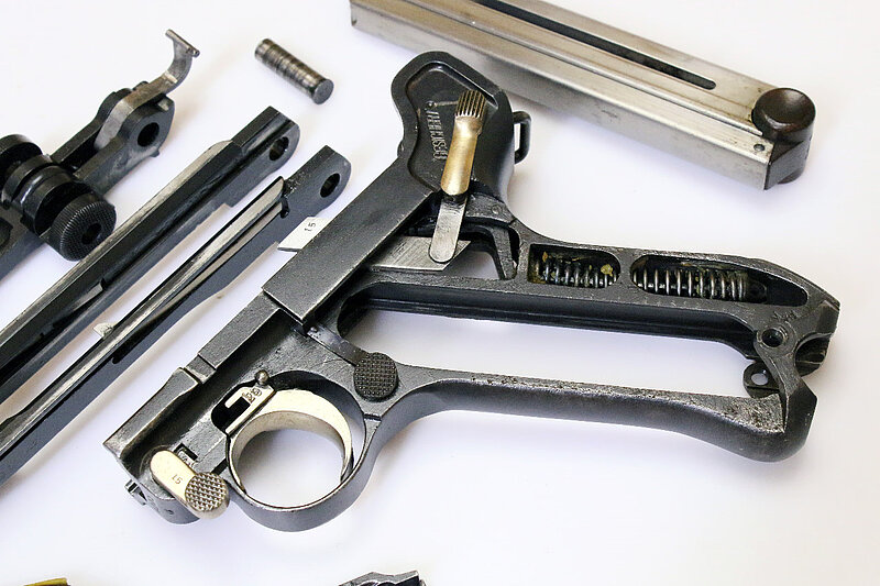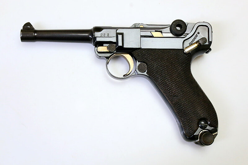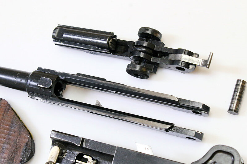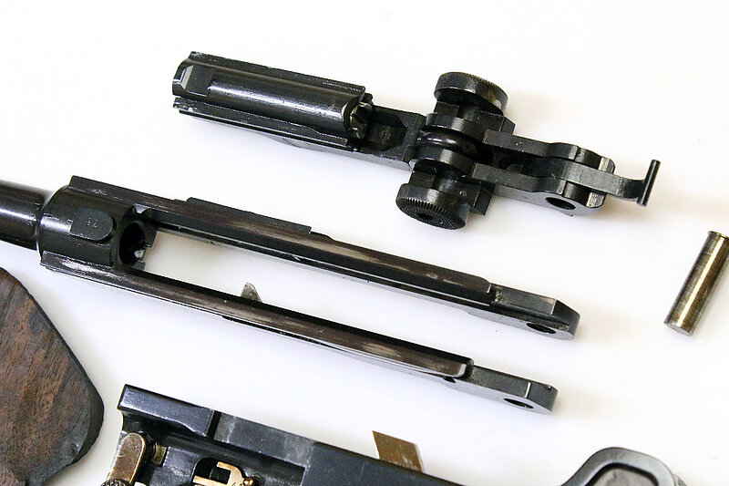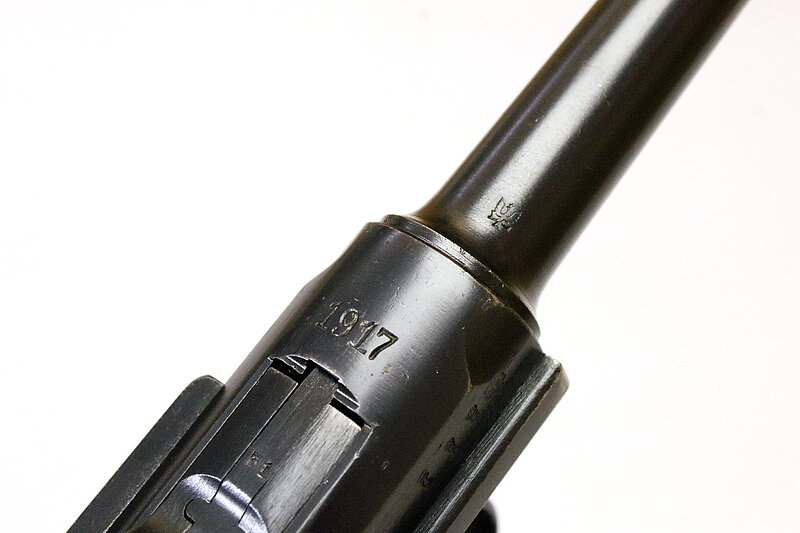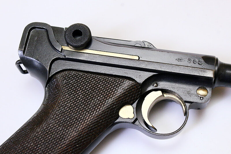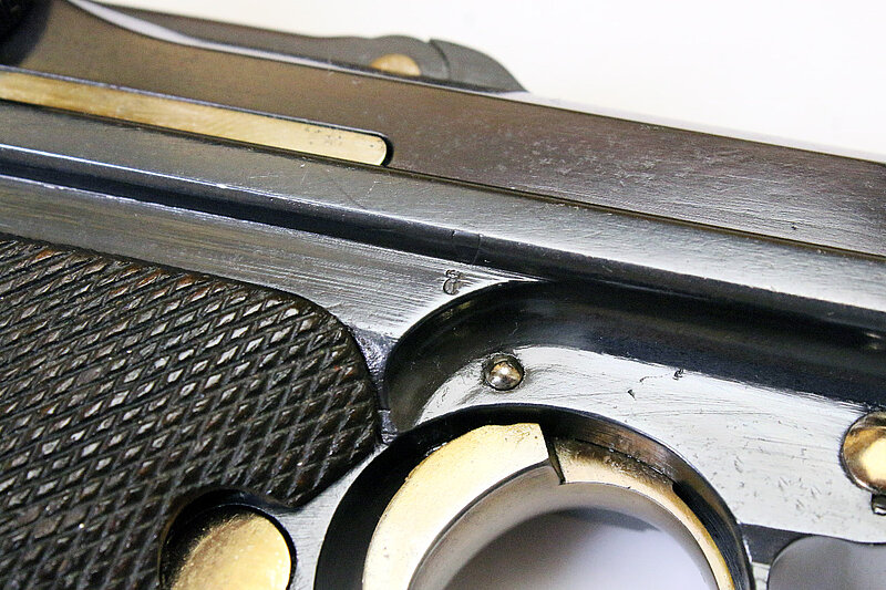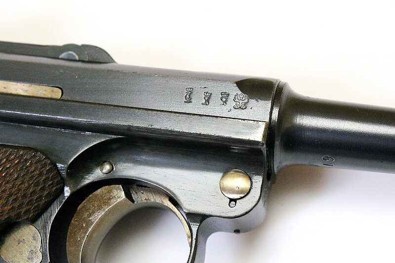 Die angebotene Parabellum zeigt die starke Wahrscheinlichkeit auf, dass Luger seinerzeit nicht nur in Bulgarien aktiv war, sondern zeitgleich auch versuchte, nach Serbien zu liefern. Ein Musterexemplar dafür entnahm er der laufenden Fertigung, denn sonst stünden auf dem Hintergelenk anstatt der Seriennummer seine Initialen "GL". Vermutet werden kann nun, dass es sich dabei entweder um ein individuelles Geschenk von Seiten Lugers an den serbischen Hof handelte, oder um ein Musterexemplar an das Militär oder um einen Auftrag des serbischen Hofes an DWM für eine Geschenkwaffe. Allerdings ist anzunehmen, dass noch weitere Pistolen mit obigem Wappen hergestellt wurden, denn das Schneiden dieses Rollstempels für nur eine Pistole dürfte doch zu aufwändig gewesen sein. Jedenfalls handelt es sich bis jetzt um ein absolutes Unikat, weder in der Literatur erwähnt, bei Sammlern bekannt, noch im Handel angeboten.