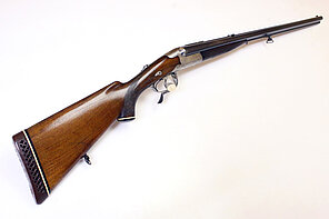 - blanke Stahlbasküle mit akzentuierten Gravuren, Rückstecher, Laufselektion mit Sicherung für die Auswahl des Büchslaufes, Sicherung links am Kolbenhals; Roux-Verschluss mit Doppelhakenverriegelung, Waffe schließt perfekt & spiellos