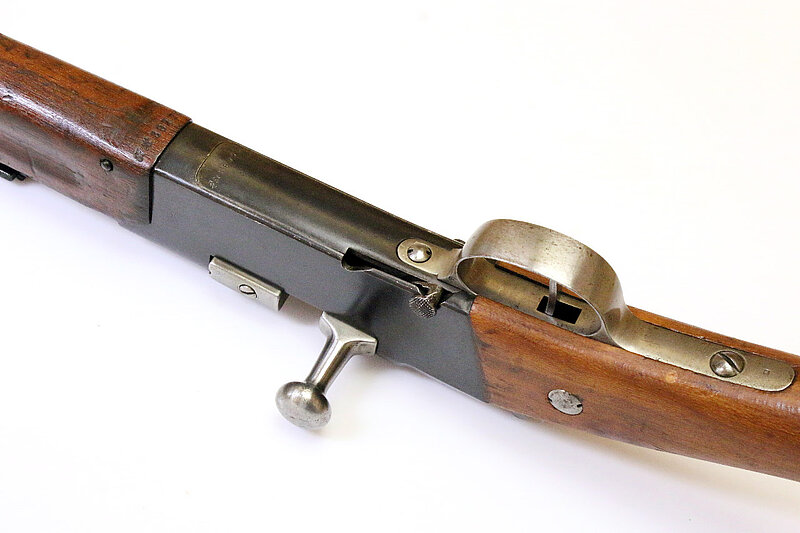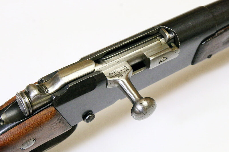 Brünierung am System partiell etwas fleckig, Patinaansätze am Lauf