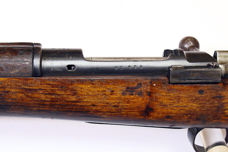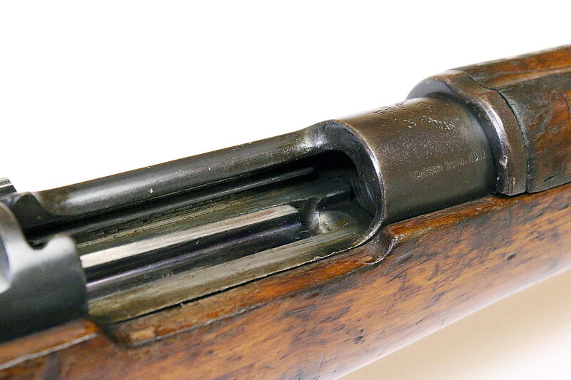 blanke Kammerhülse, links auf Führung Fertigungsnummer, beginnend mit Präfix "OT" > wohl für Ordenanza Transformado, Umbau auf .308Win. ab 1943