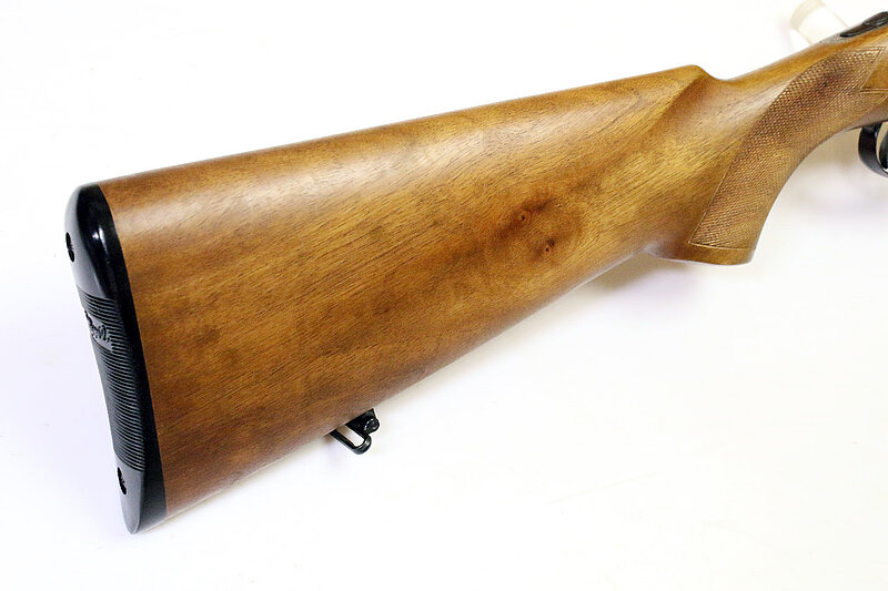 Nussholzschaft, orignale Kunststoff-Schaftkappe, feiner Fischhautverschnitt am Griff & Vorderschaft