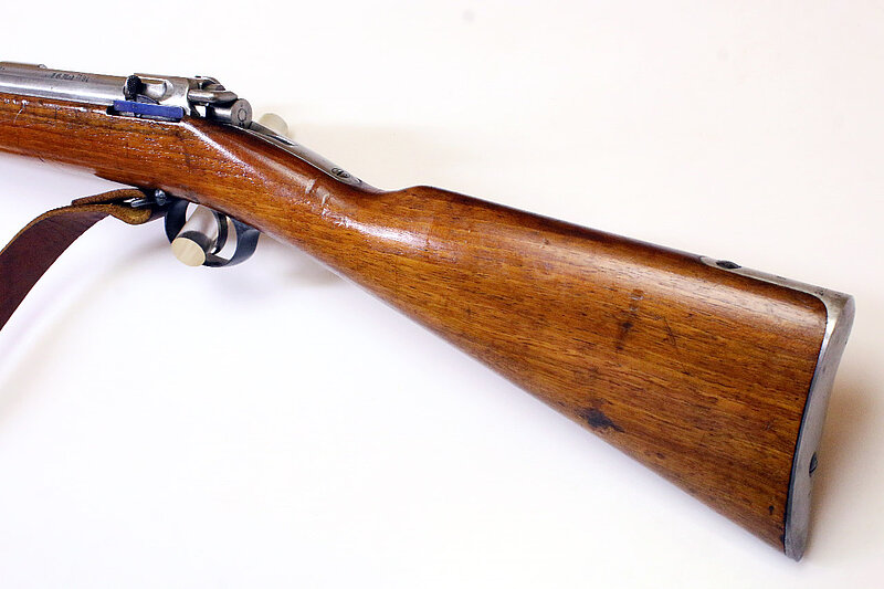 originaler Nussholzschaft mit erkennbaren kaiserliche Prägungen (siehe Fotos), Trageriemen, Schaftkappe am Nasenteil mit Truppenstempel "4.G.R.R.276." > 4. Grandier-Regiment König Friedrich der Große, Rekruten-Depot, Waffe Nr. 276