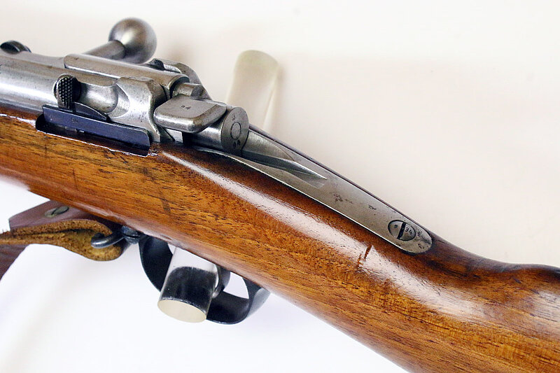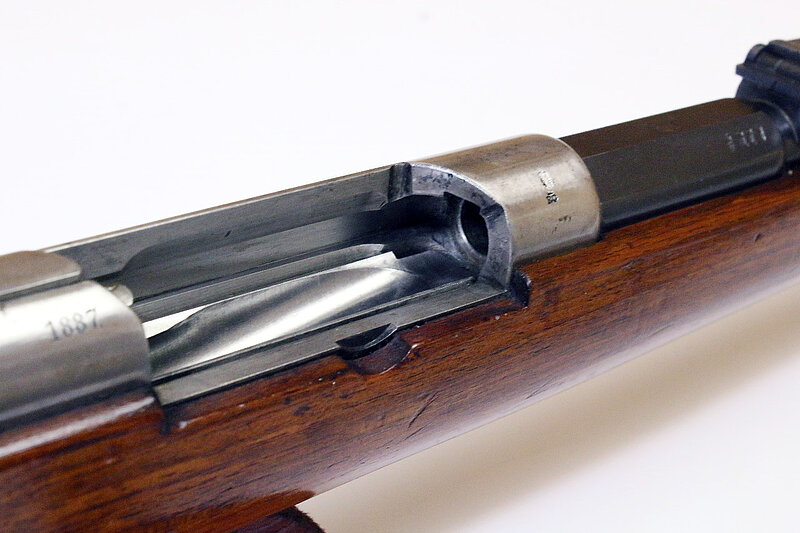 Kammerhülse bez. "SPANDAU 1890" unter Krone, gest. "S" für Umrüstung auf Patrone "8x57IS" & Halbmond der Türkei, rechts kaiserliche Abnahmen, links auf Führung "Gew. 88."